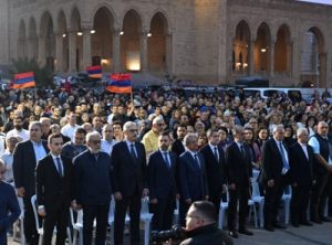 Lebanese-Armenians hold ceremony at Martyrs’ Square, denouncing denial and linking historic genocide to current-day ethnic cleansing in Artsakh.