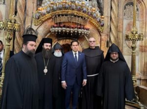 U.S. Secretary of State makes his inaugural visit to Jerusalem’s Church of the Holy Sepulchre, welcomed by Armenian Patriarchate representatives.