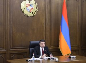 The Armenian parliament speaker’s office refutes claims that Alen Simonyan called for Russia’s defeat during a meeting with Baltic lawmakers.