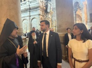 U.S. Vice President JD Vance visited the Armenian section of the Holy Sepulchre Church in Jerusalem, receiving a briefing on the local Armenian presence.