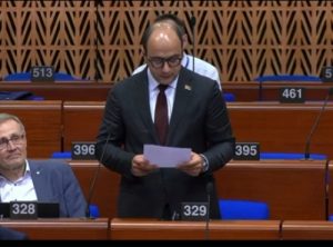 Member of the Armenian delegation to PACE, MP from the “I Have the Honor” bloc Hayk Mamijanyan delivered remarks at a PACE session.