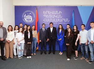 YSU students who received scholarships from Byblos Bank Armenia gathered in a casual setting to meet with the Bank’s CEO, Hayk Stepanyan.