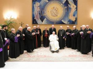 As the Pope is recovering from a cold, his speech was read aloud by Msgr. Filippo Ciampanelli.