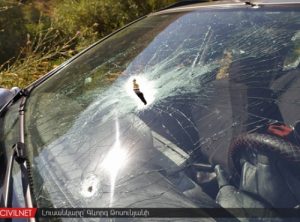 Photos published from the scene showed a damaged SUV with broken windows and windshield in the town of Jermuk.