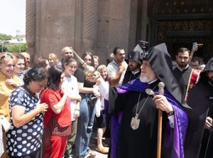 The young Armenians took part in the festivities with joyful water games and music, observing Vardavar traditions while using the occasion to show solidarity with the Church.