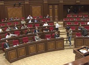 Hovik Aghazaryan was removed from Parliament after throwing a bottle and accusing the ruling party of anti-Russian incitement.