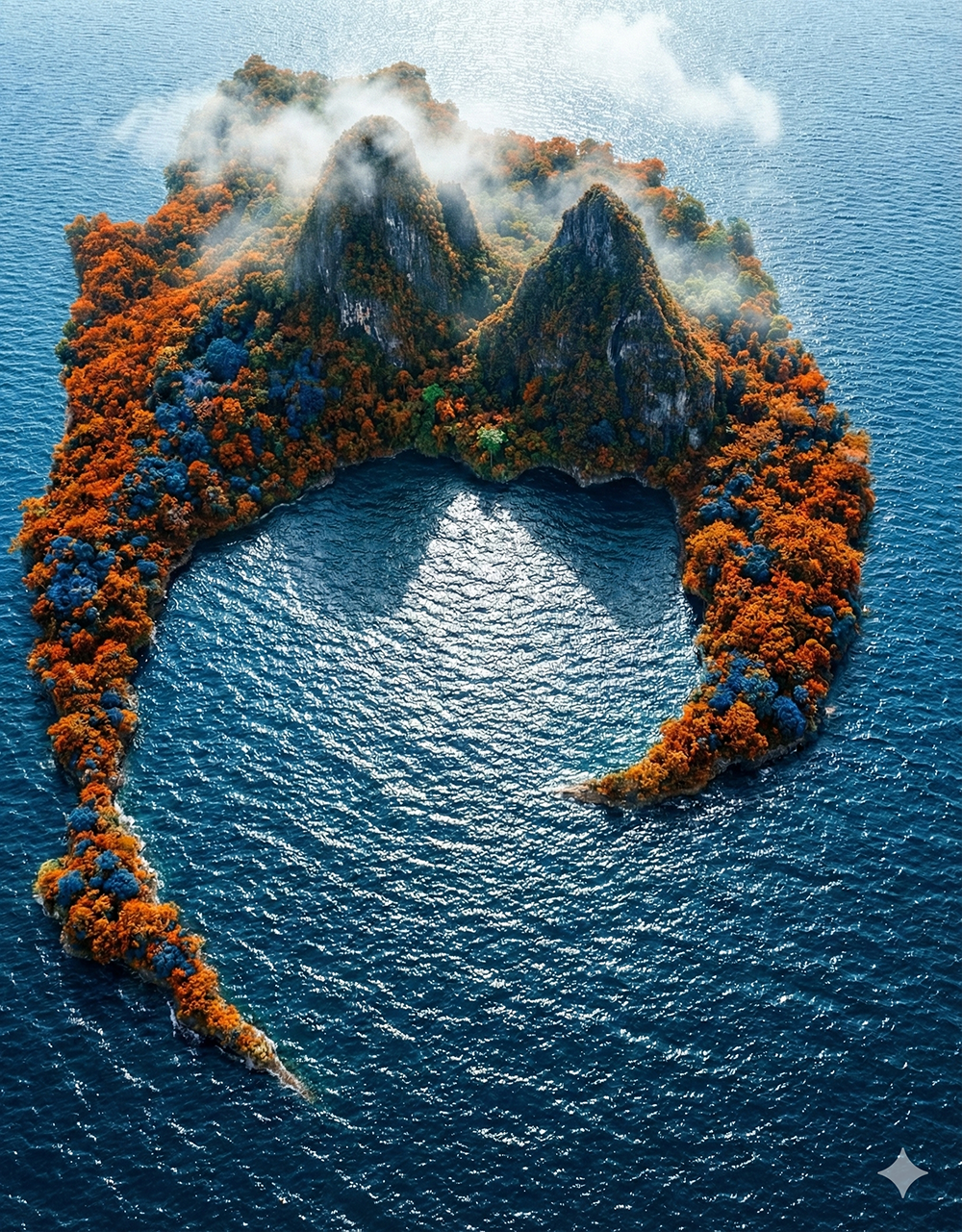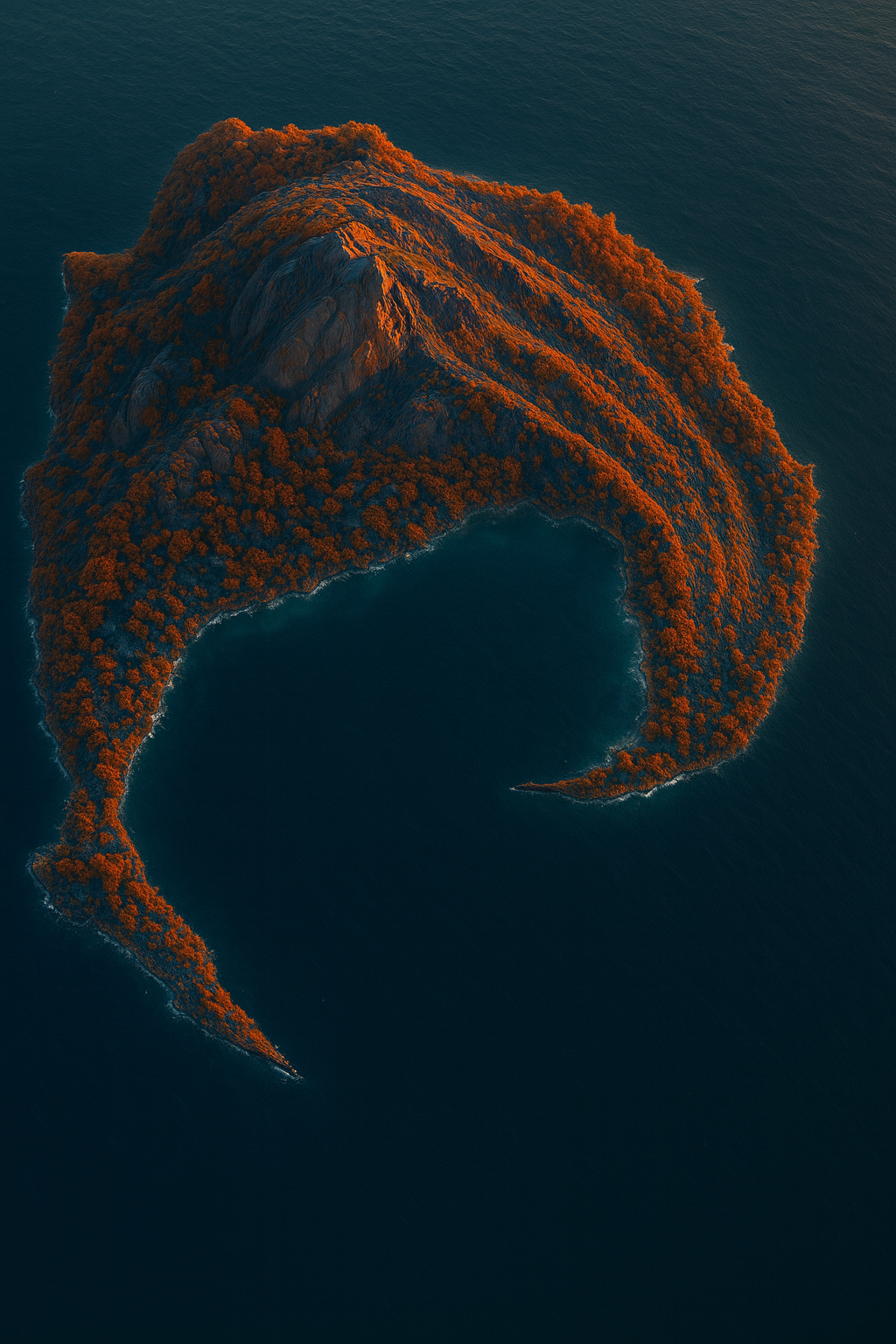 Կղզին փոքր է, մոտ քսան կիլոմետր երկարությամբ ու մոտ տասներկու կիլոմետր լայնությամբ։ Ձևով այն ձգված կիսալուսին է։ Մակերեսը մոտ 113 քառակուսի կիլոմետր, սակայն կան հիմնավոր կասկածներ, որ կղզու մակերևույթը միայն այսբերգի գագաթն է, խիստ հարուստ կենդանական ու բուսական աշխարհի ճնշող մեծամասնությունը բնակվում է խորքերում։ Բանը նրանում է, որ կղզին, ըստ էության, հսկայական սիլիկատա-անոբտանիումային համաձուլվածքի մոնոլիտ կտորի միայն վերին հատվածն է։ Նախկինում կարծիք կար, որ կղզին ունի հրաբխային ծագում, սակայն արբանյակային պատկերները միանշանակ վկայում են. սա Պանդորայի սիրտը մխրճված հսկայական մոնոլիտ օբյեկտի վերևի հատվածն է։ Առայժմ անհայտ է, երբ է տեղի ունեցել բախումը ու ինչու օբյեկտը չի ոչնչացել մոլորակի հետ բախման արդյունքում, այլ զուտ մխրճվել ու մնացել է նրա մանտիայում։
