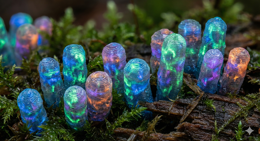 3. Մեկօրյա «ազդանշանային փարոսներ»։ Խոնավ հողի վրա կամ ծառերի բներին Լիտոկորիսը տպում է փոքրիկ բիոլյումինսցենտ սնկանման օրգանիզմներ, որոնց բարձրությունը առավելագույնը մեկ-մեկ ու կես սանտիմետր է։ Մեկ օր անց դրանք մահանում են` հասցնելով այդ ընթացքում կամ լուսային ազդանշան ուղարկել մյուս շինարարներին, կամ գրավել զուգընկերների, կամ նշել որսի համար հարմար վայրերը, կամ բոլորը միասին։
