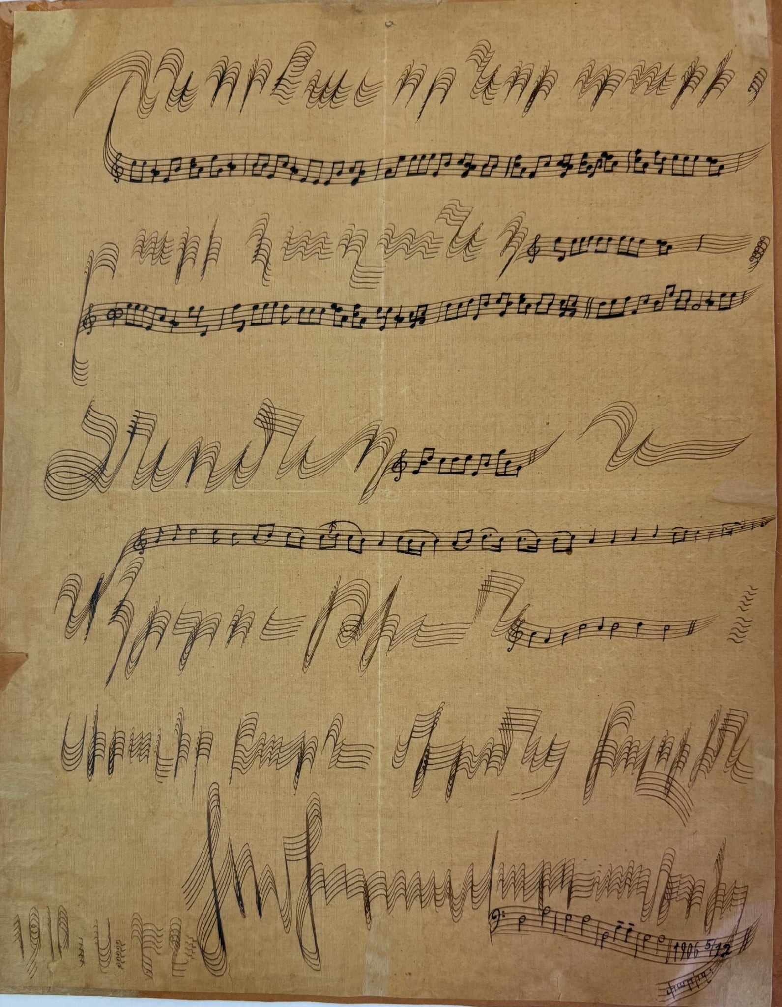 Կոմիտաս վարդապետն Ամանորի ինքնագիր ու յուրօրինակ այս նամակը 1910 թվականին գրել է նոտաներով, այն պահվում է Գրականության և արվեստի թանգարանի Մարգարիտ Բաբայանի ֆոնդում։