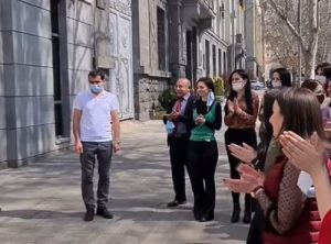Աշխատակիցները նրան հրաժեշտ են տվել նախարարության բակում