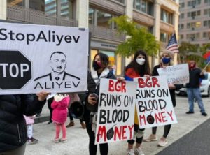 Ցուցարարները ՀՀ և Արցախի դրոշներով էին և պաստառներով