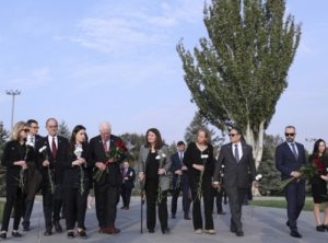 Հյուրերը ծաղիկներ և ծաղկեպսակ են դրել Հայոց ցեղասպանության զոհերի հիշատակը հավերժացնող անմար կրակի մոտ