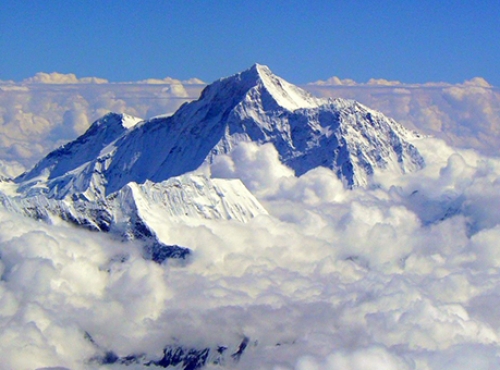 Джомолунгма, Эверест, Сагарматха – высочайшая вершина Земли. Расположена в Гималаях, в хребте Махалангур-Химал (в части, называемой Кхумбу-Гимал). Южная вершина (8760 м) лежит на границе Непала и Тибетского автономного района (Китай), Северная (главная) вершина (8848 м) расположена на территории Китая. Эверест имеет форму трехгранной пирамиды, южный склон более крутой. На южном склоне и ребрах снег и фирн не удерживаются, вследствие чего они обнажены. Высота Северо-восточного плеча 8393 м. Высота от подножия до вершины около 3550 м. Вершина состоит в основном из осадочных отложений.
