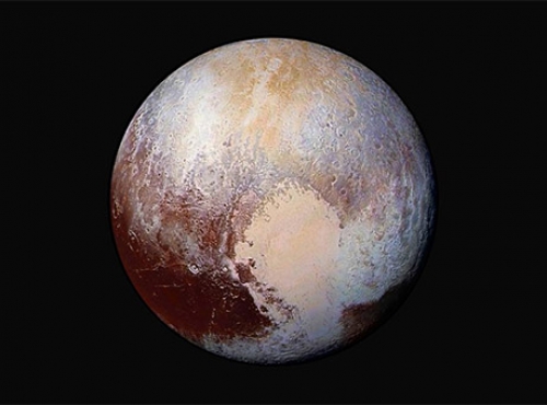 Снимок Плутона в усиленных цветах. Фотография сделана с расстояния 450 тысяч километров,Изображение: NASA/JHUAPL/SwRI