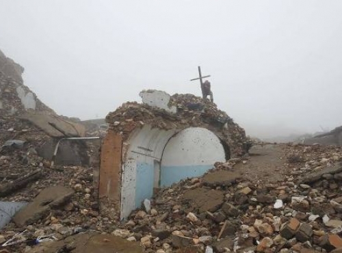Езидские ополченцы, отвоевавшие город Синджар (Шангал) от террористов Исламского государства, восстановили крест на разрушенном христианском храме.