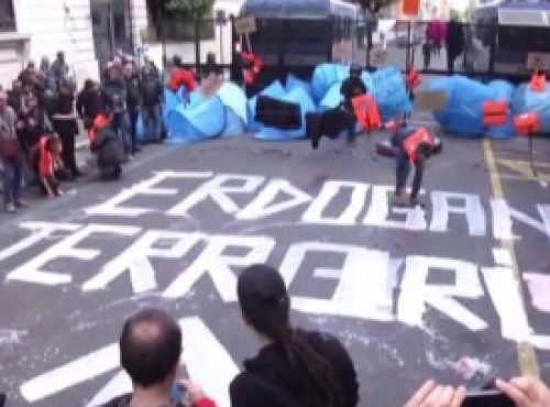 В Риме у стен турецкого посольства собрались недовольные соглашением по беженцам между Турцией и Евросоюзом. Перед входом в здание на асфальте они крупными буквами написали «Эрдоган — террорист». Реакции из Анкары пока не последовало, пишетVesti.ru.