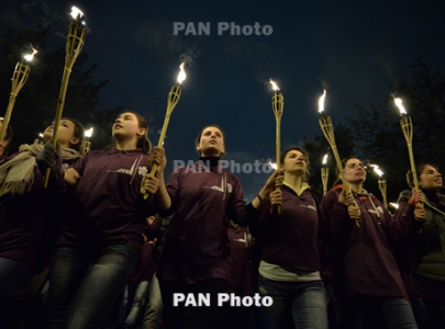 В Ереване началось традиционное факельное шествие, посвященное годовщине Геноцида армян. В этом году шествие началось от площади Республики.