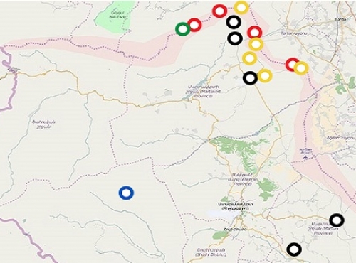Синим представлены сводные данные о потерях с армянской и азербайджанской сторон в ходе боевых действий