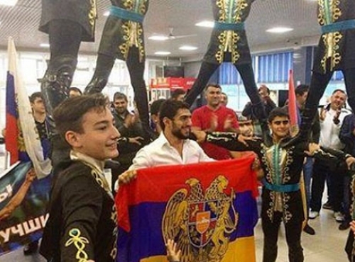 По прибытию армянскому спортсмену вручили чек на сумму 2.5 млн. рублей.