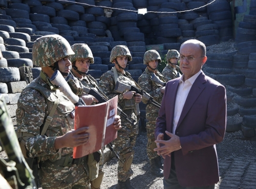 Отмечается, что Оганян посетил опорные пункты, ознакомился с социально-бытовыми условиями, инспектировал процесс организации боевого дежурства и службы.В одном из подразделения он ознакомился с ходом масштабных инженерно-технических работ.