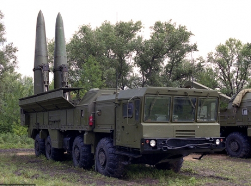 Оперативно-тактический ракетный комплекс «Искандер-М» разработан в 1990-е годы и принят на вооружение в 2006 году. Выпускается на замену устаревшим комплексам «Точка». Дальность действия ракет – 500 километров, для экспортной версии — 280 километров. Аэробаллистические ракеты «Искандер-М» управляются на всем протяжении полета, что делает их траекторию непредсказуемой и затрудняет перехват средствами ПРО. Также комплекс может применять высокоточные крылатые ракеты Р-500.