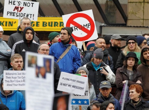 Всего в акциях, проходивших в центре города, приняли участие около тысячи человек. Большинство были одеты в черную одежду и скандировали «Нет Трампу». Некоторые из них вели себя агрессивно — бросали в полицейских кирпичи и бутылки с водой, передает «Дождь» со ссылкой на Associated Press.