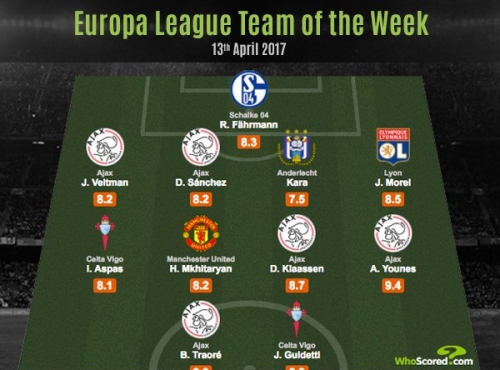 Статистический ресурс WhoScored составил символическую сборную четвертьфинала Лиги Европы.
