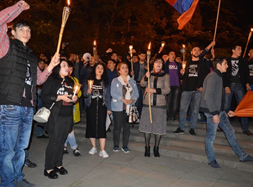 Демонстранты прошлись по улицам Тбилиси с факелами, свечами, официальными флагами вместе с национальными флагами Армении и Грузии, требуя признания грузинским правительством Геноцида армян.