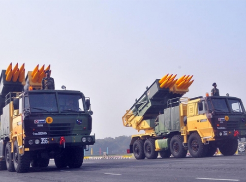 Индийская всепогодная 214-мм реактивная система залпового огня Пинака предназначена для поражения живой силы, легкобронированной и бронированной техники, пусковых ракетных установок, разрушения командных пунктов, узлов связи и объектов военно-промышленной инфраструктуры, дистанционной установки противотанковых и противопехотных минных полей.