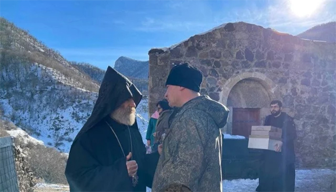 Кроме того, сообщается, что настоятель Арцахской епархии Паргев Мартиросян прибыл в Дадиванк и провел службу для паломников и венчание. Он также передал российским миротворцам новогодние подарки – крестики и письма от арцахских детей на русском языке.