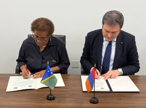 14 мая в Нью-Йорке Постоянный представитель Армении Паруйр Ованнисян и Постоянный представитель Соломоновых Островов Джейн Мугафалу Кабуи Веатаран подписали Совместное коммюнике об установлении дипломатических отношений между Республикой Армения и Соломоновыми Островами.