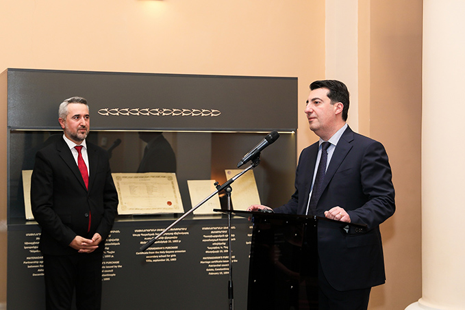 Торжественная церемония передачи рукописи состоялась во время открытия выставки «Вечность одного года: рукописные приобретения Матенадарана II», организованной в рамках международного арменоведческого конгресса. В церемонии передачи рукописи приняли участие видные арменоведы, представители духовных и исследовательских центров, руководители музеев, ученые, деятели культуры, представители партнерских организаций из около сорока ведущих научнообразовательных учреждений.