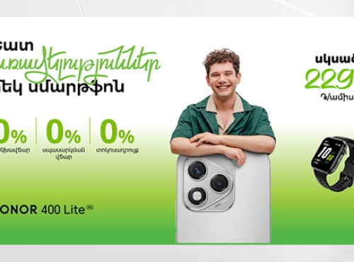 Только в Ucom, в рамках специального предложения, покупатели смартфона HONOR 400 Lite 5G получат фирменные умные часы HONOR Choice 2i, а также 2 месяца бесплатного обслуживания с красивым номером на тарифном плане Level Up+ 3000, всего за 2290 драмов в месяц. Смартфон доступен как за наличные по цене 109 900 драмов, так и в рассрочку на специальных условиях — 0% первоначального взноса, 0% комиссии за обслуживание и 0% годовой ставки в течение первых 8 месяцев.