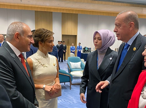 Пашинян находится в Китае вместе с супругой Анной Акопян. На опубликованных ею фотографиях видно, что они также имели короткую встречу с президентом Азербайджана Ильхамом Алиевым. На встречах с лидерами Турции и Азербайджана присутствовали и их супруги.