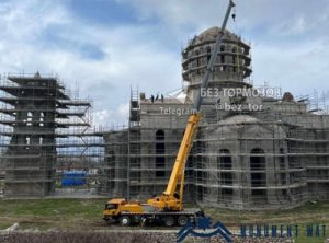 На фотографиях видно, что азербайджанцы разрушили крестообразное окно на одном из фасадов и скульптуру над ним