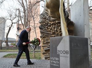 Пашинян возложил цветы к памятнику «Влияние и противодействие», установленному в парке на улице Григора Лусаворича