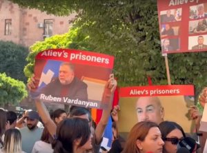 Члены молодежного союза АРФД провели акцию у здания правительства, выражая протест визиту Сердара Кылыча.