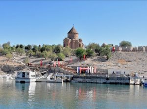 Священнослужители и паломники, прибывшие в город специально для участия в церемонии, были доставлены на остров на лодках.